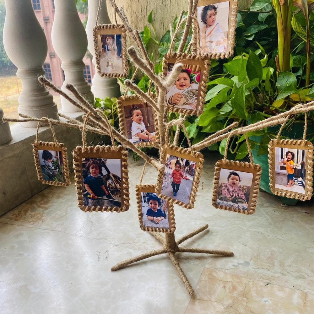The personalised photo tree is made with jute and comes with 10 beloved picture pouches, perfect to give those wonderful moments some shade. The photos are printed on glossy photo paper with perfect pouch size (2x3"). This photo tree is knee length (2 feet) in size, perfect for tabletops at your place.